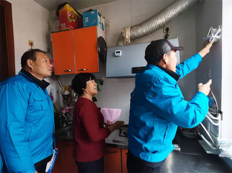 2022年1月5日,李滄區(qū)虎山路街道辦事處順河路社區(qū)書記魏超以及虎山路街道城管處江隊(duì),青島同源液化氣有限公司工作人員登門為轄區(qū)內(nèi)使用液化氣的困難家庭,免費(fèi)安裝了燃?xì)庑孤﹫缶鳎蜕蠍坌拇竺?、花生油、面粉等生活物品,現(xiàn)場為困難家庭們講解了安全用氣知識,幫助他們安裝了可燃?xì)怏w報警器,讓他們切實(shí)感受到了社會各界的溫暖和關(guān)愛。為困難居民送去寒冬的溫暖與祝福。