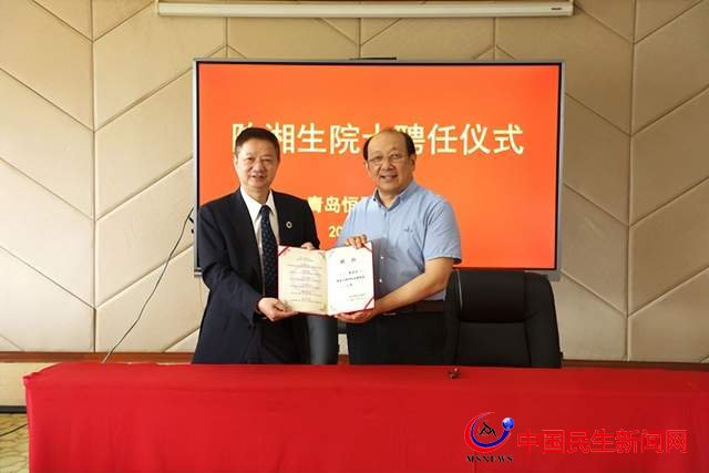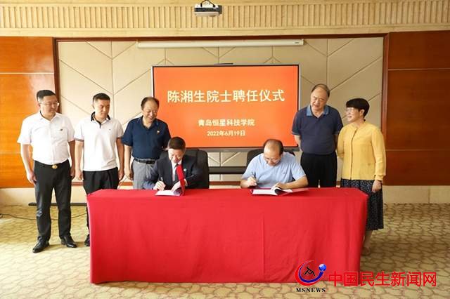 接著,舉行聘任儀式,陳湘生院士受聘為青島恒星科技學院建筑工程學院名譽院長,陳昌金董事長為其頒發(fā)聘書。