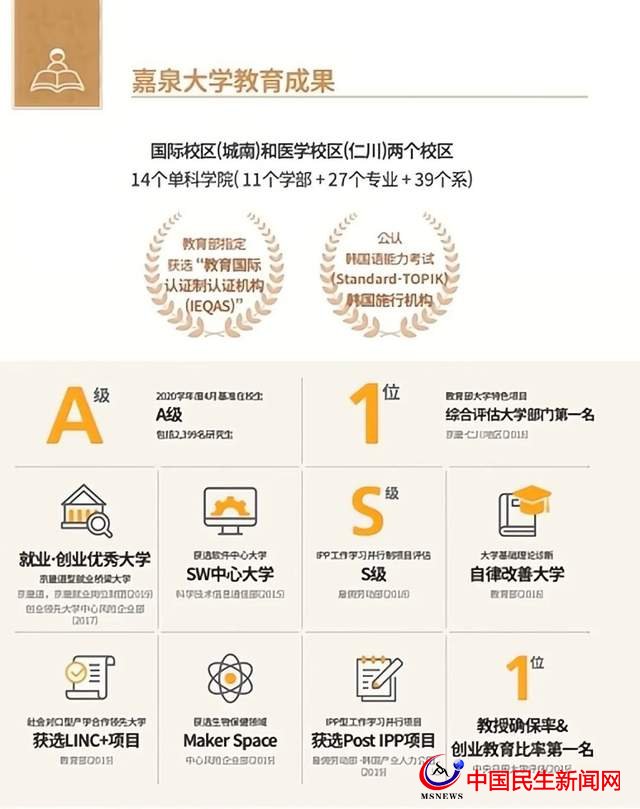 嘉泉大學(xué)是韓國最早開設(shè)軟件學(xué)院的大學(xué),2019年在韓國率先開設(shè)本科人工智能系,優(yōu)越的地理位置也推動(dòng)了學(xué)校與板橋科技谷之間的地域聯(lián)系和產(chǎn)學(xué)合作。校長為李吉女(???)美國時(shí)事周刊《新聞周刊(Newsweek)》評(píng)選的“2012影響世界的150位女性。