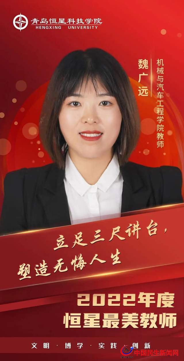 魏廣遠(yuǎn),中共黨員,研究生學(xué)歷,碩士學(xué)位,畢業(yè)于大連理工大學(xué),現(xiàn)任青島恒星科技學(xué)院機(jī)械與汽車工程學(xué)院教研室主任兼教師。2016年參加工作以來,先后主持參與省級科研立項(xiàng)3項(xiàng),校級科研立項(xiàng)4項(xiàng),主持并參與發(fā)表論文4篇,主編教材2部,申報(bào)、發(fā)表專利2項(xiàng),多次指導(dǎo)學(xué)生參加省級大賽,獲省市級大賽“優(yōu)秀指導(dǎo)教師”稱號。因工作表現(xiàn)突出,多次被學(xué)校表彰為“優(yōu)秀教師”、“優(yōu)秀共產(chǎn)黨員”。