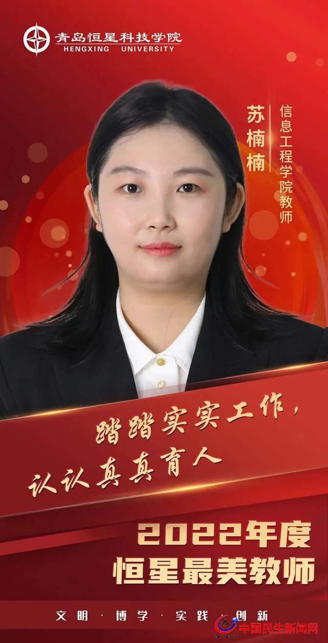 蘇楠楠,中共黨員,研究生學(xué)歷,2014年入職青島恒星科技學(xué)院,現(xiàn)任信息工程學(xué)院軟件教研室主任。先后發(fā)表論文多篇,省級開放課程1門,先后獲“上海合作組織青島峰會志愿者服務(wù)優(yōu)秀指導(dǎo)教師”,榮獲青島恒星科技學(xué)院“優(yōu)秀共產(chǎn)黨員”、“優(yōu)秀教師”、“師德標(biāo)兵”等稱號。她的教學(xué)成績連續(xù)多次居學(xué)校前列。2020年的春節(jié),面對突如其來的新型冠狀病毒肺炎來襲,疫情防控工作開展以來,她毅然把孩子托付給老人后,帶領(lǐng)丈夫每天參與社區(qū)志愿活動。她始終以一個優(yōu)秀共產(chǎn)黨員和優(yōu)秀教師的標(biāo)準(zhǔn)嚴(yán)格要求自己,師德高尚,愛崗敬業(yè),深受學(xué)生的愛戴、家長的歡迎和領(lǐng)導(dǎo)的好評。