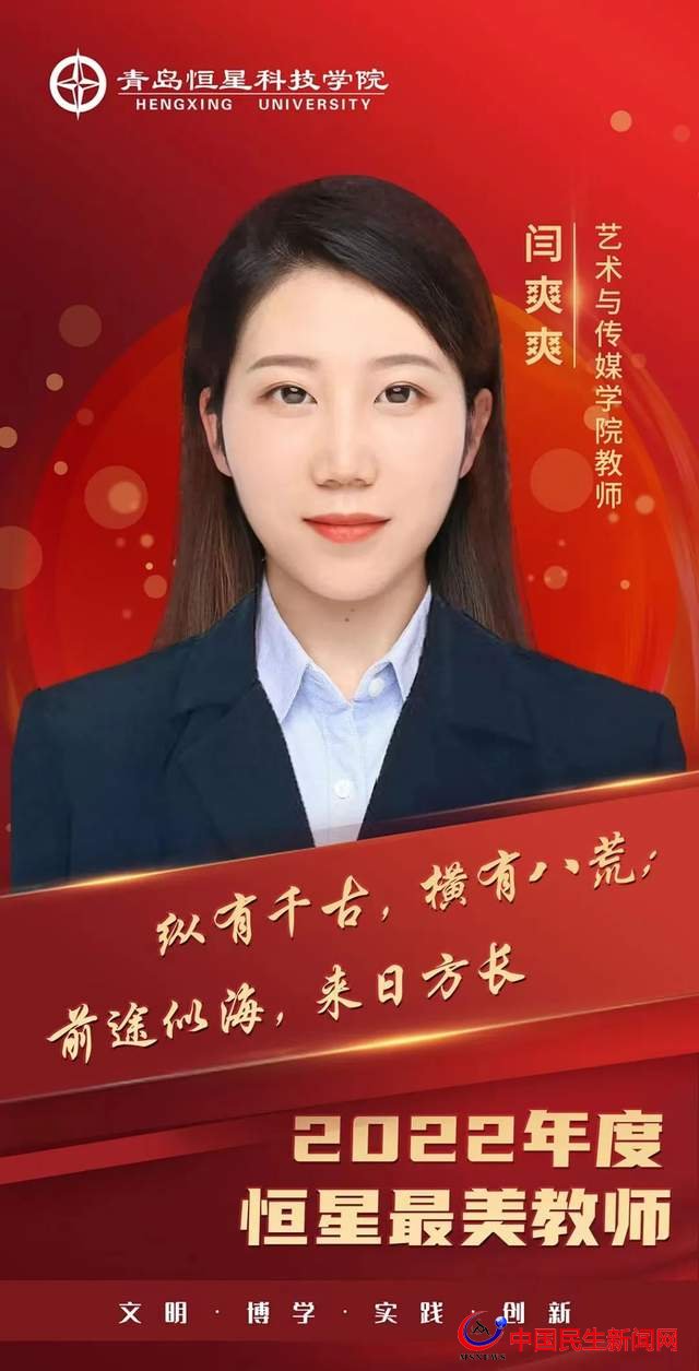 閆爽爽,中共預(yù)備黨員,研究生學(xué)歷,講師職稱,畢業(yè)于首都體育學(xué)院,現(xiàn)任青島恒星科技學(xué)院藝術(shù)與傳媒學(xué)院教研室主任、教師。2017年參加工作以來,她追求專業(yè)品質(zhì),善于學(xué)習(xí),從不懈怠,全身心投入到教育事業(yè)中去。近5年來參與省級課題2項(xiàng),主持校級課題3項(xiàng),發(fā)表論文10余篇;2021年獲得山東省體育舞蹈優(yōu)秀裁判員,先后獲得校級“優(yōu)秀教師”“優(yōu)秀教研室主任”稱號。