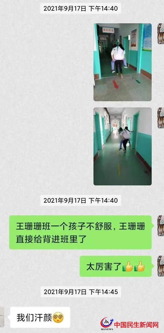 去年,王老師班級內(nèi)一位女生突然胃痙攣,疼的蜷縮在那兒無法行走,王老師見狀二話不說躬身彎下腰就把學(xué)生拉到了自己的背上,趕忙讓她到休息室喝熱水緩解一下,等學(xué)生無恙后害羞地到王老師面前表示感謝時,王老師只是輕輕地說:“這沒有什么,老師就和媽媽一樣,能背的動你!”
