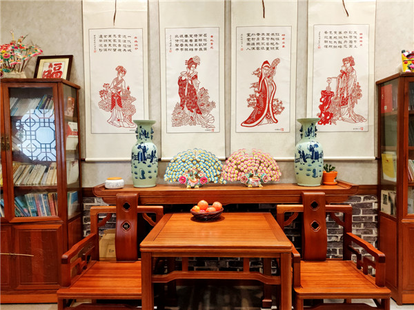 8月14日,記者走進(jìn)位于金沙灘啤酒城東側(cè)4號(hào)木屋的七寶菜館,鄉(xiāng)村風(fēng)情讓人眼前一亮。菜館頂篷貼滿了紅色福字剪紙,每一幅都不相同;連廊博古架擺滿老物件,黑白電視機(jī)、老式收音機(jī)復(fù)古氣十足;以寶山鎮(zhèn)特色命名的包廂“藍(lán)莓甜田”等,擺在炕上草席上的小方桌瞬間帶人穿越回故鄉(xiāng)深處,勾起滿滿的兒時(shí)回憶。