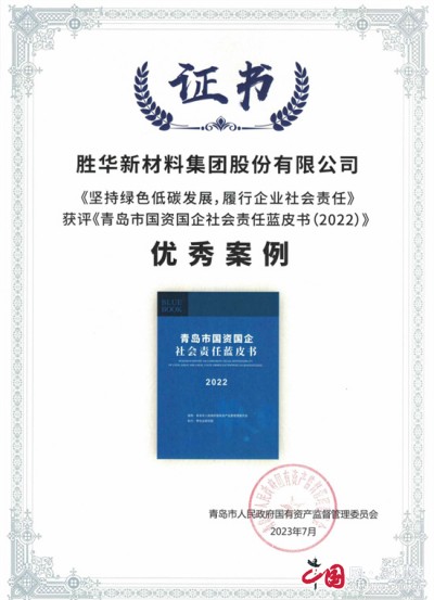 其中,經(jīng)控集團申報的勝華新材料集團股份有限公司《堅持綠色低碳發(fā)展,履行企業(yè)社會責任》獲評《青島市國資國企社會責任藍皮書(2022)》“綠色低碳發(fā)展篇”優(yōu)秀案例。這是經(jīng)控集團及所屬企業(yè)繼獲評2022山東社會責任企業(yè)以來,在踐行社會責任領域獲得的又一殊榮。