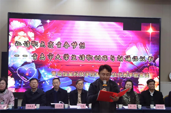 近日,由青島市文學(xué)藝術(shù)界聯(lián)合會(huì)指導(dǎo),青島作家協(xié)會(huì)、青島春泥詩(shī)社、青島恒星科技學(xué)院等多家單位聯(lián)合主辦的“沽河之春”青島市首屆大學(xué)生詩(shī)歌論壇在青島恒星科技學(xué)院國(guó)際培訓(xùn)中心隆重舉行。本次活動(dòng)以“青春與詩(shī)意對(duì)話——探索新時(shí)代大學(xué)生詩(shī)歌創(chuàng)作的新路徑”為主題,吸引了青島市文聯(lián)、作協(xié)領(lǐng)導(dǎo)、高校師生代表、文學(xué)社團(tuán)成員及媒體等近200人齊聚一堂,共襄詩(shī)歌文化盛事。