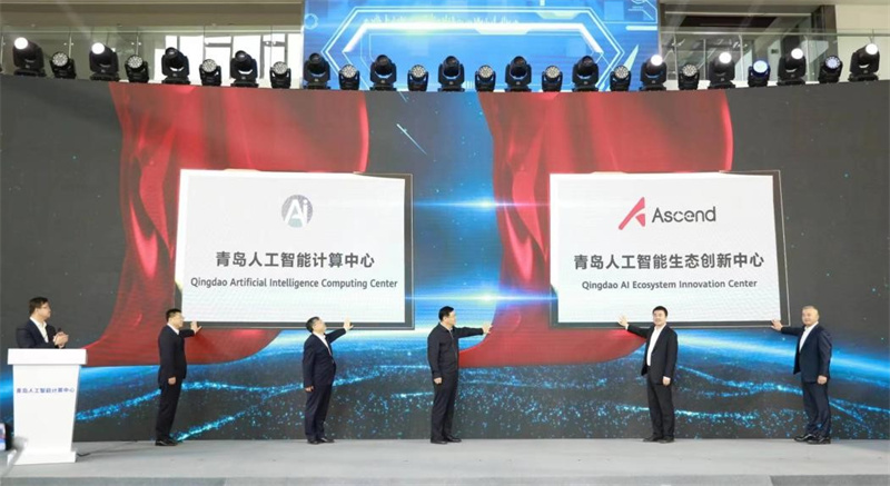 活動現(xiàn)場,趙豪志、鄧泰華、耿濤、張元升、方海暉等領導和嘉賓共同為“青島人工智能計算中心”“青島人工智能生態(tài)創(chuàng)新中心”揭牌。