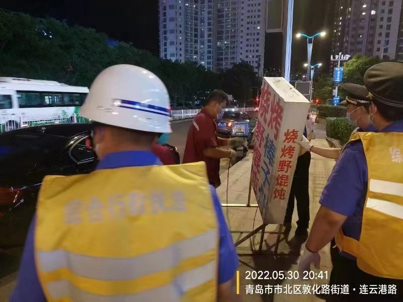 結全城區(qū)實際,市北區(qū)聚焦難點、痛點問題,以主干道、學校醫(yī)院、居民小區(qū)、農貿市場攤點群、商業(yè)街等區(qū)域為重點,對占路經營、露天燒烤等市容秩序亂象問題開展全天候巡查整治,結合示范路創(chuàng)建,進一步優(yōu)化轄區(qū)市容秩序。截止目前,共整治規(guī)范中跨門經營、占路經營2.7萬余處,清理亂堆亂放、亂拉亂掛、亂貼亂畫8800余處,清理地樁地鎖1100余處,拆除違規(guī)戶外廣告招牌1.1萬余平方米、臨時廣告2.3萬余平方米。