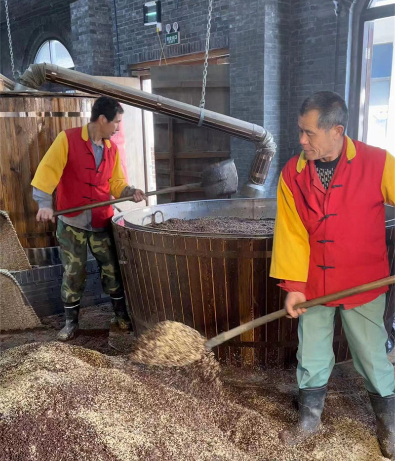 展廳內(nèi)栩栩如生的泥人,展示了宏源傳統(tǒng)手工釀酒工藝的全部過(guò)程,從選料、粉碎、踩曲、入窖、出窖、攪拌、蒸餾、窖藏,將“水必甘、糧必精、曲必陳、器必潔、工必細(xì)、貯必久、管必嚴(yán)”的傳統(tǒng)古法釀酒工藝展現(xiàn)的淋漓盡致。