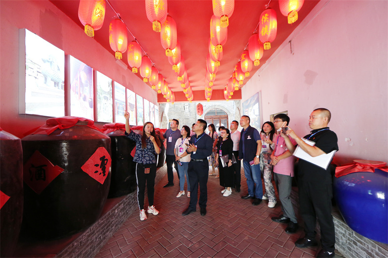 青島快訊 ( 董成臻 徐優(yōu)) 9月29日上午,在壽光市侯鎮(zhèn)宏源酒業(yè)有限公司,“中國(guó)民生新聞網(wǎng)山東頻道新聞與運(yùn)營(yíng)研討會(huì)”在這里成功舉辦,期間,他們隨著酒廠工作人員的腳步,聞著空氣中的酒香,參觀了宏源酒文化博物館。