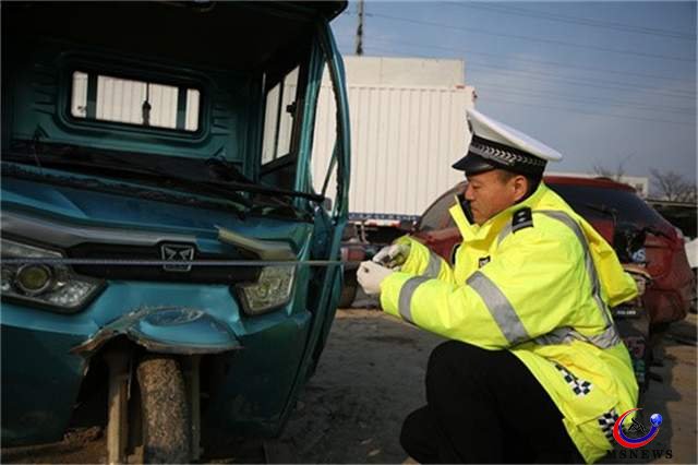 通過去建材市場走訪,初步判斷這是裝萬能膠水的桶,三輪車駕駛員和副駕駛的女性極有可能是從事裝修工作的夫妻。結(jié)合電動(dòng)三輪車行駛里程判斷,該二人居住在現(xiàn)場南側(cè)附近村莊的可能性較大,隨后,民警對蓼蘭、蘭底、張戈莊、萬家等十多個(gè)村莊逐個(gè)排查,了解該村從事裝修工作的夫妻信息,最終確定姜某有重大嫌疑。10月3日,辦案民警在曲坊村將姜某抓獲,并在其家中院子發(fā)現(xiàn)肇事車輛。11月23日,當(dāng)事人家屬趙先生特地趕到交警大隊(duì),為辦案民警送上了錦旗表達(dá)感謝。