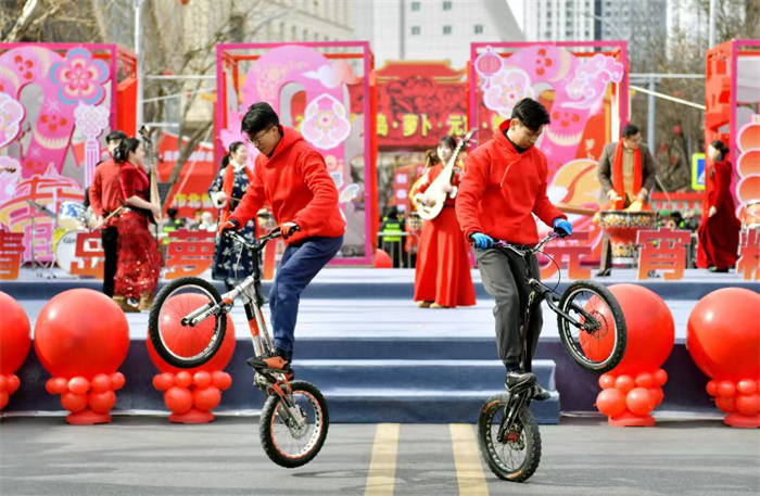 2月6日(農(nóng)歷正月初九)上午,青島市市北區(qū)大鮑島文化休閑街區(qū)熱鬧非凡,隨著《蛇舞新春》主題演出的開啟,預(yù)示著2025年青島蘿卜·元宵·糖球會——市北新春階段正式拉開帷幕。