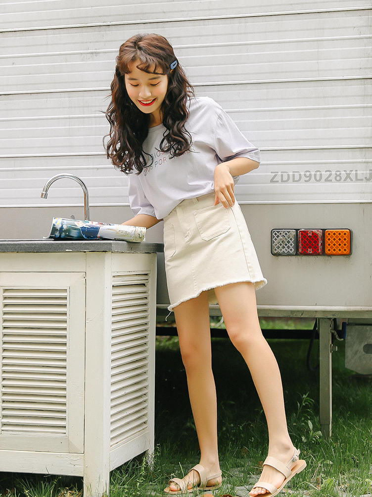 在夏季,白色的牛仔裙更加受歡迎,清爽、干凈,純潔,走在街頭令人眼前一亮,看看她們的時髦搭配誰的造型更加。很多人會說白色裙顯胖,沒錯,所以如果腿部過于壯實,這樣的直腿兒白裙拯救你。最關(guān)鍵的是,白色牛仔裙還能解決至少一半以上的配色難題,它和任何顏色都很搭。夏天+韓范+牛仔裙+T恤, 炎炎夏季里的一股清流