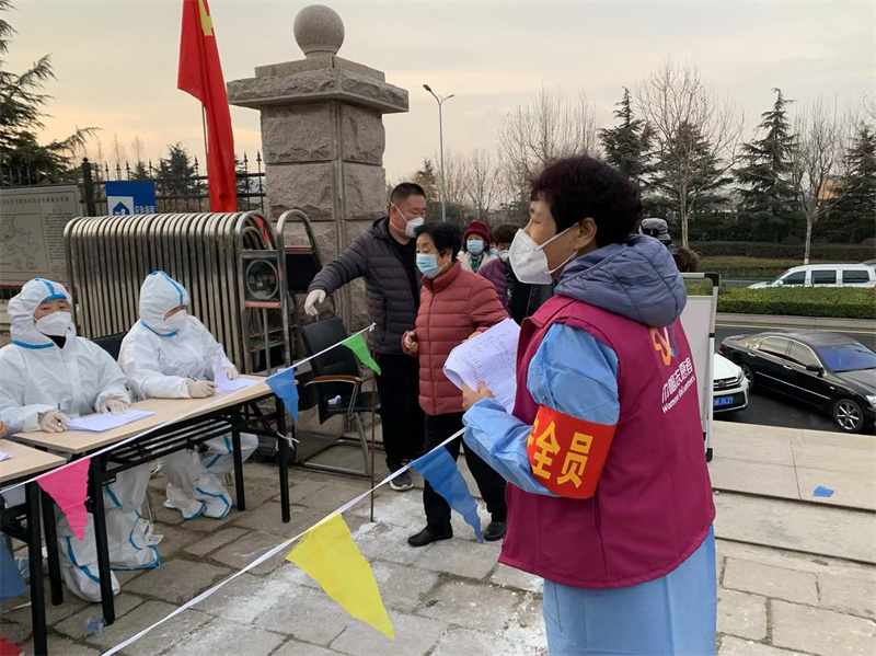 在社區(qū),不少志愿者正在核酸檢測點為居民服務(wù),在他們的引導(dǎo)下,居民有序間隔排隊,完成核酸檢測后,又有序離開現(xiàn)場。在志愿者的隊伍里,有不少“巾幗英雄”,她們穿著防護服,一干就是一天,吃飯、上廁所都顧不上;她們顧不上自家的老人和孩子,在戶外的寒風中,守護著居民們的健康。