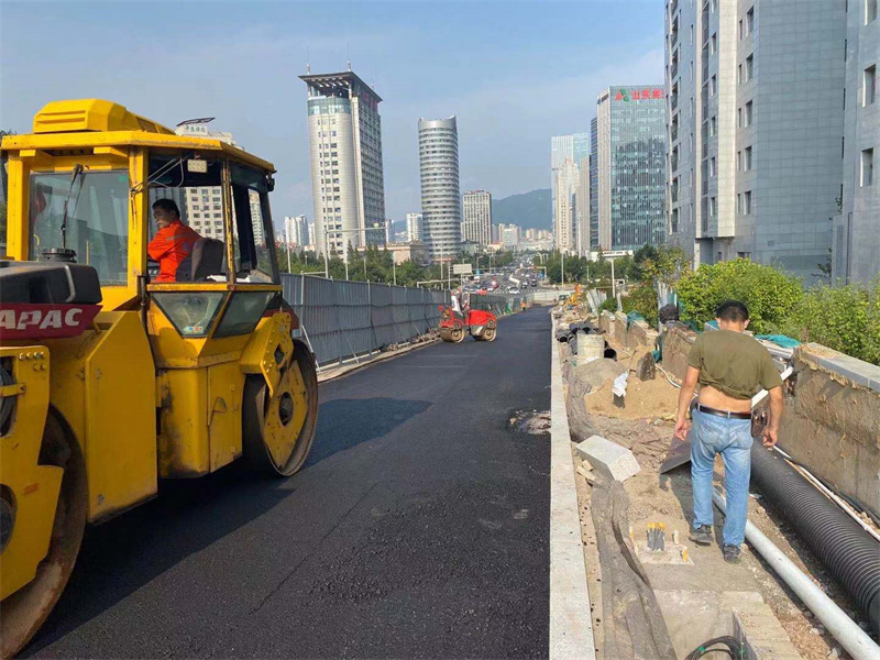 該拓寬工程施工內容主要包括道路鋪裝、安裝交通設施、安裝路燈以及綠化建設。工程于2021年6月開工,現(xiàn)已完成地面附著物清理、道路下方管線遷改工作,整體工期已完成。同時嶗山區(qū)城市管理局已會同交警部門對改造后的現(xiàn)場交通標線、標識進行了方案確定,重新進行了施劃,現(xiàn)已實現(xiàn)通車,極大緩解了山東頭路、苗嶺路等路段交通壓力。目前,施工單位正在加緊安裝路燈等配套設施,方便路人夜間安全行走。