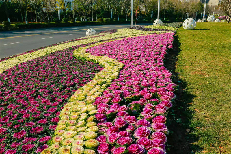 青島快訊 (通訊員 董福杰)為豐富全區(qū)冬季園林景觀效果,給疫情期間留在當(dāng)?shù)剡^年的市民朋友營造濃厚的春節(jié)氛圍,嶗山區(qū)城市管理局啟動(dòng)冬季鮮花裝扮工作,陸續(xù)引進(jìn)羽衣甘藍(lán)系列新品種,在深圳路、海爾路、東海路、??诼返嚷范卧灾?4 萬余株。