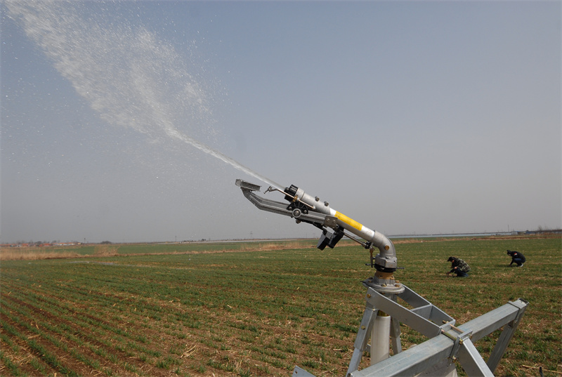 在大信街道普東村農(nóng)民袁術先的農(nóng)田里,種糧大戶袁術先正在利用雙翼式平移自行噴灌機給小麥澆水,通過提前設定好流量和時間便可實現(xiàn)全方位、無死角灌溉。袁術先告訴記者,眼下,最關鍵的就是根據(jù)小麥苗情長勢加強水肥管理,提高小麥分蘗成穗率,搭好豐產(chǎn)架子。