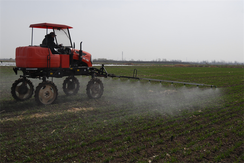 “四輪式打藥機作業(yè)效率高,霧化效果好,省力省人工,一次噴過去噴幅是12米,這一臺機器一天能作業(yè)500畝,不用一個小時就干完了。”孫云高站在地頭上笑呵呵地告訴記者。