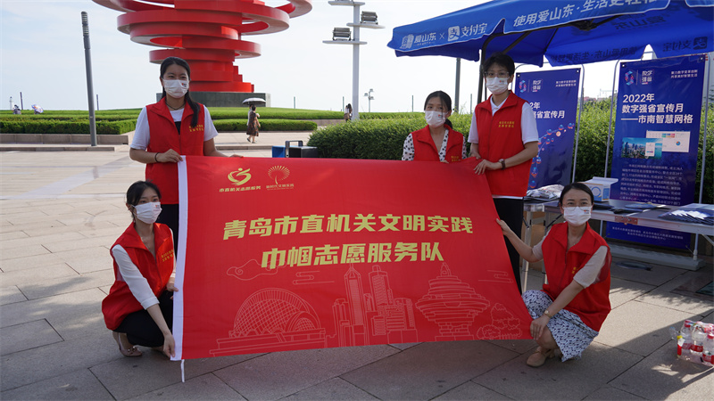 青島市大數(shù)據(jù)局文明實(shí)踐巾幗志愿服務(wù)隊(duì)組織2022數(shù)字強(qiáng)省線下宣傳活動(dòng)