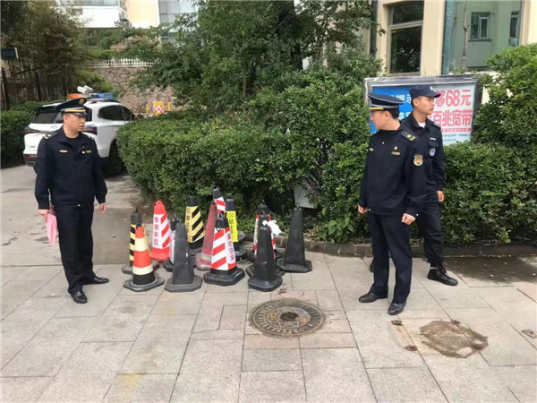 5月15日,嶗山區(qū)綜合行政執(zhí)法局開展“青島城管在您身邊--執(zhí)法服務進社區(qū)”活動?;顒又?,當執(zhí)法人員來到榮美御園小區(qū),看到小區(qū)公共停車線內擺放著多個錐形帽,為防止錐形帽丟失,有的錐形帽上還拴了繩子。執(zhí)法人員告訴記者,榮美御園小區(qū)沒有物業(yè)管理,部分居民私自安裝地鎖,前期執(zhí)法人員將私設的地鎖進行了統(tǒng)一清理。今天他們過來發(fā)現,個別居民又在公共停車區(qū)域內擺上了臨時地樁?;顒蝇F場,執(zhí)法人員再次將臨時地樁進行了清理,共清理14個。