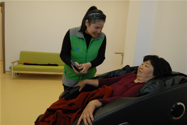 中心內(nèi)設(shè)日托間、中醫(yī)館、康復(fù)訓(xùn)練室、孝親大講堂、理發(fā)室、書畫室、助老澡堂、棋牌室和助老食堂等功能區(qū)。此外,還就近招聘護理員,為80周歲以上的老年人和失智失能群體提供不同類型的醫(yī)護上門服務(wù),如按摩推拿、緊急救助、精神慰藉等。
