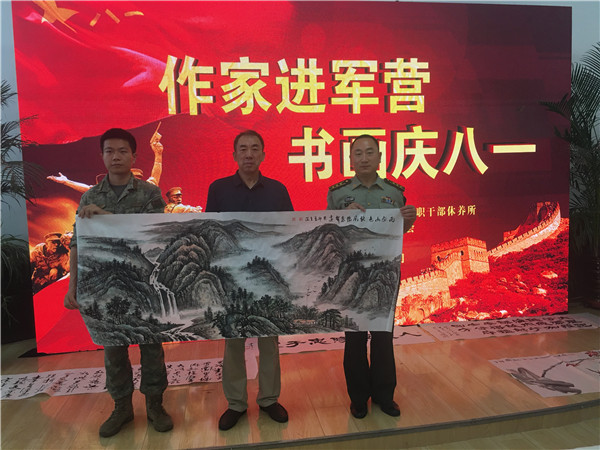 今年是中國人民解放軍建軍96周年,是延安雙擁運(yùn)動(dòng)80周年和抗美援朝勝利70周年,也是青島市爭創(chuàng)全國雙擁模范城“十連冠”的迎檢之年。在這樣一個(gè)具有重大紀(jì)念意義的節(jié)點(diǎn),7月26日,市北區(qū)文學(xué)藝術(shù)界聯(lián)合會(huì),市北區(qū)作家協(xié)會(huì)組織作家、畫家、書法家走進(jìn)軍營——山東省軍區(qū)青島第十三離職干部休養(yǎng)所,開展“作家進(jìn)軍營•書畫慶八一” 文化擁軍志愿服務(wù)活動(dòng)。