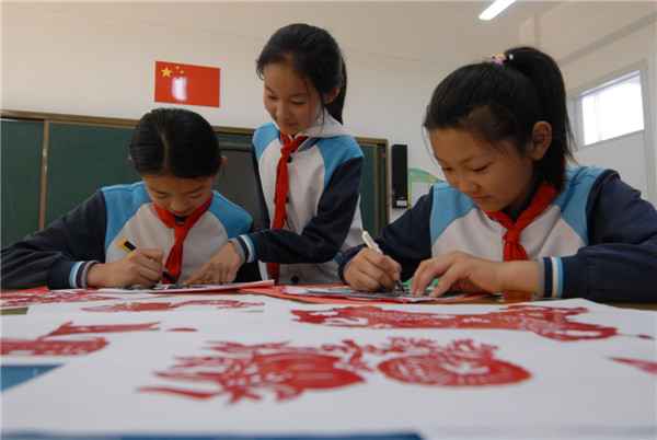 教育的同時(shí),深入挖掘剪紙文化的育人功能,把德育活動(dòng)滲透到剪紙活動(dòng)之中,讓學(xué)生在活動(dòng)中熟悉剪紙、喜愛剪紙。學(xué)生每周一節(jié)剪紙課,做到課堂上人人學(xué),課后到興趣小組學(xué),形成了學(xué)校全體師生人人學(xué)剪紙、人人會(huì)剪紙的濃厚氛圍。