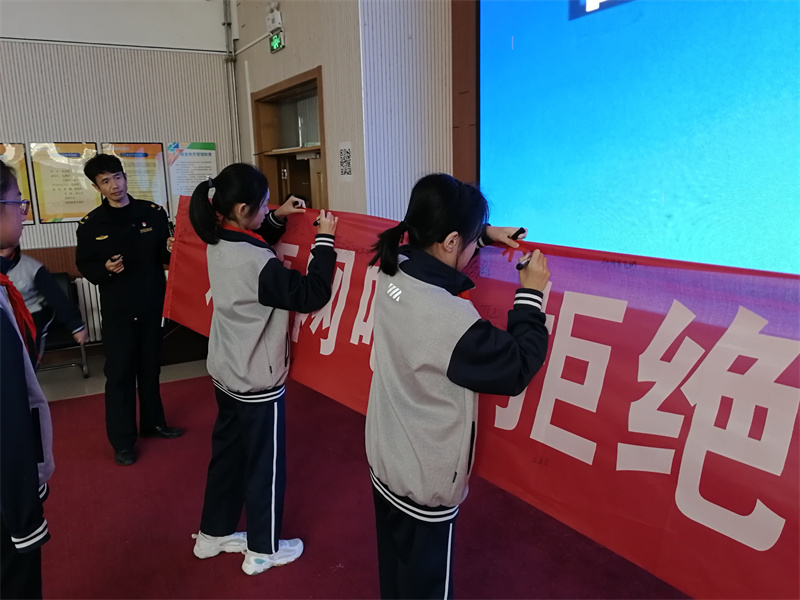 本次活動,通過組織觀看“遠離網(wǎng)吧、文明上網(wǎng)”公益宣傳片、開展專題授課、學生代表宣讀倡議書及集體簽名承諾等形式,向同學們講解法律知識,剖析典型案例,提出預防對策,教育引導學生們樹立正確的人生觀和價值觀,增強網(wǎng)絡素養(yǎng),培養(yǎng)自覺抵制網(wǎng)絡不良信息和安全文明的上網(wǎng)習慣,提高了學生們的法制意識和自我保護能力,增強了他們學法、知法、守法、用法的自覺性和主動性,有效預防和減少青少年學生違法犯罪,促進青少年健康成長?;顒又?,還向同學們贈送了學習文件袋、綠書簽及相關法律知識宣傳資料等各類宣傳品1000余份。