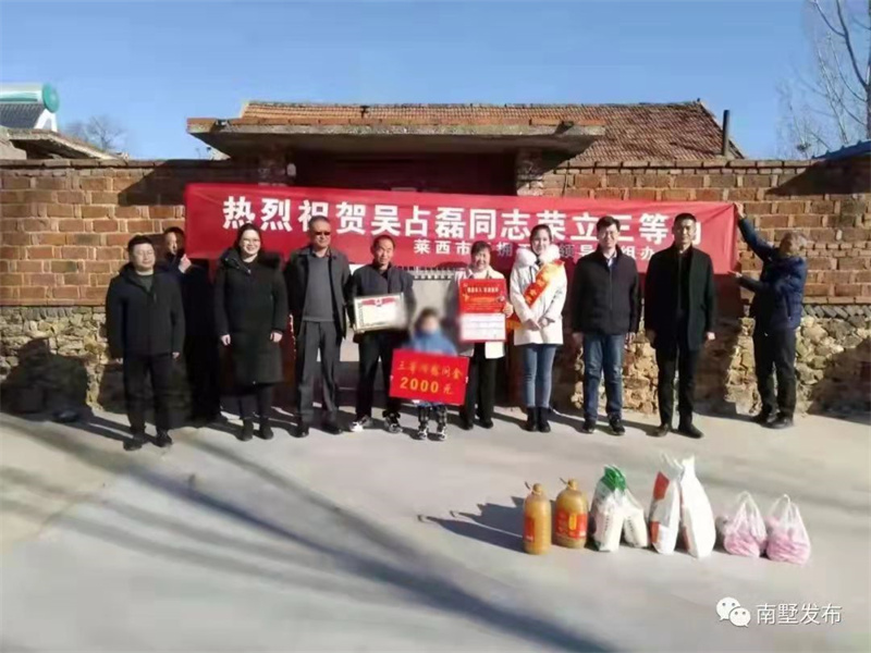中國民生新聞網(wǎng)訊(本網(wǎng)記者 史小雷)“一人立功,全家光榮”,為弘揚擁軍優(yōu)屬,擁政愛民的光榮傳統(tǒng),努力提升軍人尊崇感,青島萊西市退役軍人事務局邴其健主任、萊西市南墅鎮(zhèn)武裝部部長姜成林、萊西市南墅鎮(zhèn)宣傳委員萬千、萊西市南墅鎮(zhèn)人大副主席兼河里吳家新村黨委書記吳曉、萊西市南墅鎮(zhèn)退役軍人服務站工作人員到萊西市南墅鎮(zhèn)河里吳家村慰問三等功功臣吳占磊同志,向其取得的榮譽表示祝賀。