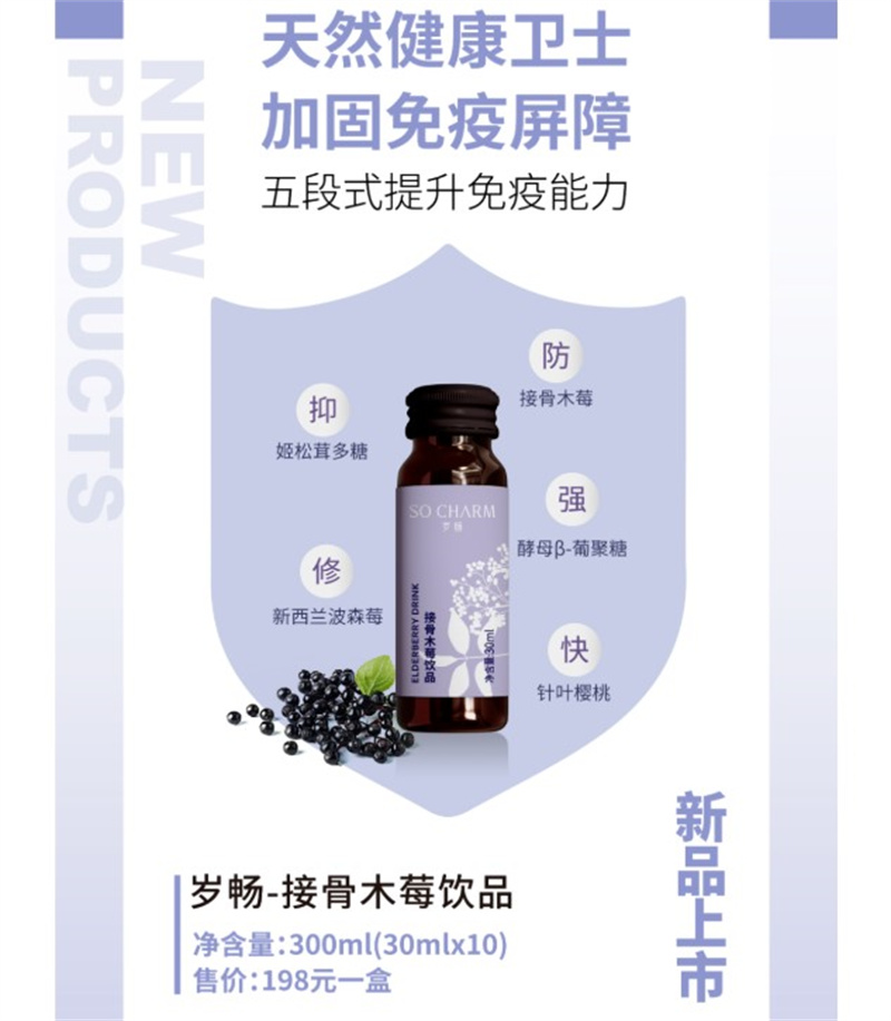 在官方公眾號“歲暢品牌官方”發(fā)布的文章《新品上市 | 免疫力才是你的超能力》當中,該產(chǎn)品還號稱可以“五段式增強免疫能力”。