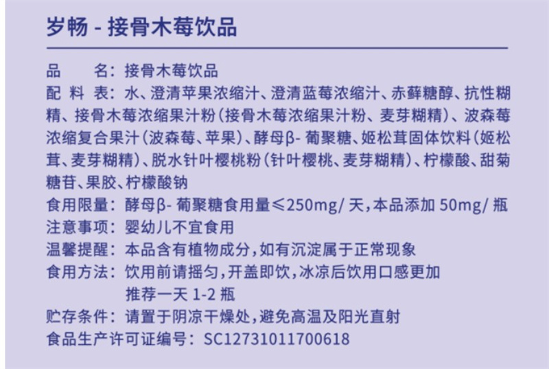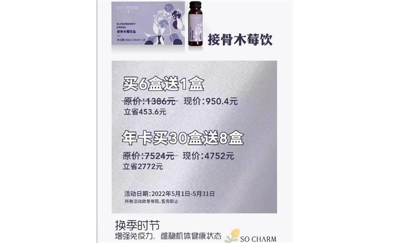 與森米、夢笙一樣,歲暢瞄準的依然是保健市場,旗下產(chǎn)品包括體重管理系列,生理管理系列和肌膚管理系列。雖然歲暢所銷售的依然是普通食品,但宣傳的功效仍舊離不開保健作用。以“歲暢接骨木莓飲品”為例,該產(chǎn)品就被經(jīng)銷商提供的宣傳材料包裝出了提高免疫力的保健功效。