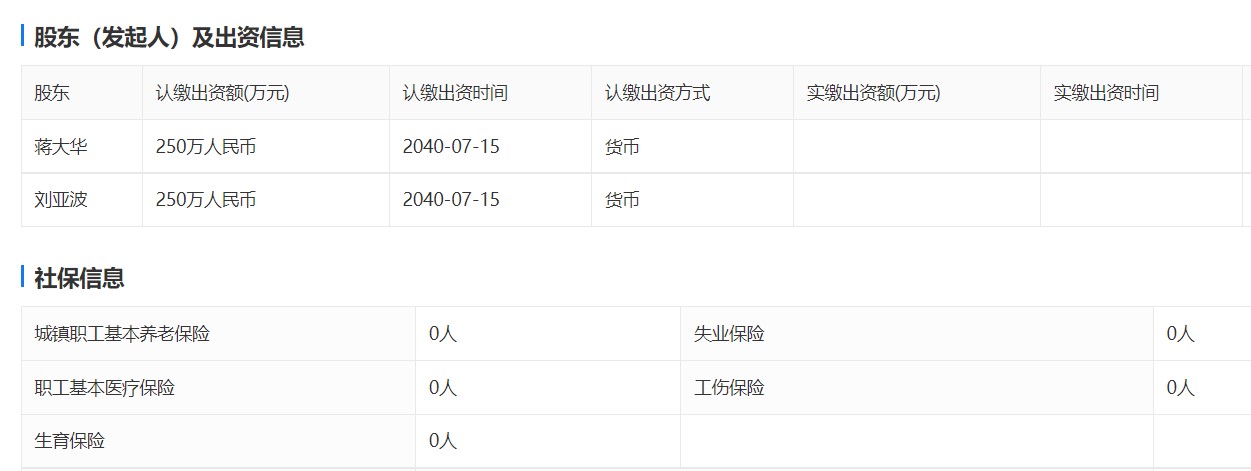 2021年11月26日,歲暢SOCHARM品牌全球發(fā)布會在武漢舉行,歲暢品牌創(chuàng)始人艾小米、MINI與多位聯(lián)合創(chuàng)始人、經(jīng)銷商出席了本次活動。經(jīng)查,歲暢的經(jīng)營主體為上海歲暢生物科技有限公司,該公司成立于2021年8月9日,法定代表人蔣大華,股東有蔣大華、劉亞波,注冊資本500萬元,據(jù)2021年度報告顯示,該公司股東的實繳出資情況與員工參保情況如下:
