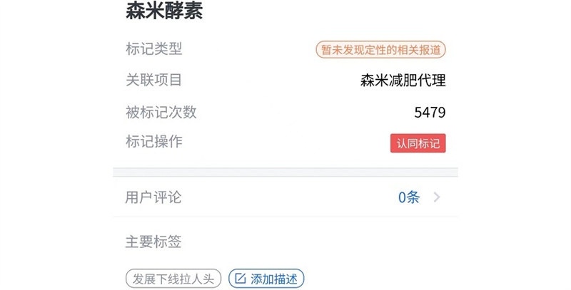 近年來,網(wǎng)上關(guān)于森米和夢笙所推行的模式涉嫌傳銷的爭議之聲也已愈發(fā)響亮,在騰訊靈鯤金融風險監(jiān)管平臺上,森米系的開創(chuàng)者“森米酵素”已被標記了5479次,主要標簽有“發(fā)展下線拉人頭”的字樣。