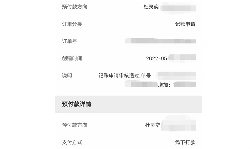 順帶一提,據(jù)經(jīng)銷商曬出的給歲暢打款的相關(guān)截圖顯示,其預(yù)付款方向正是杜靈奕的賬戶。