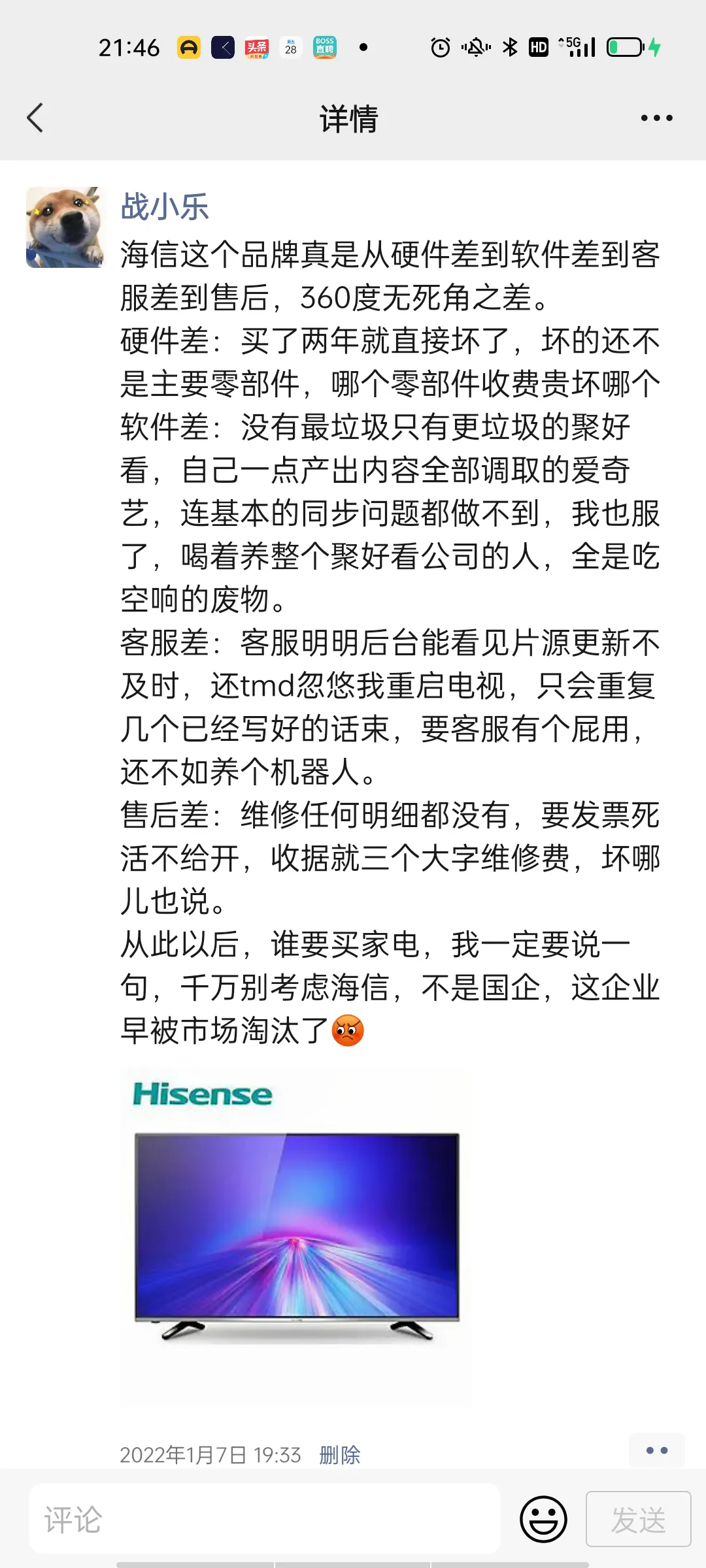 @海信 @海信電視 海信電視買了不到三年壞了硬件壞軟件壞了軟件壞硬件,這次不想修了,反正馬上618了想學(xué)老羅砸個電視現(xiàn)在征集