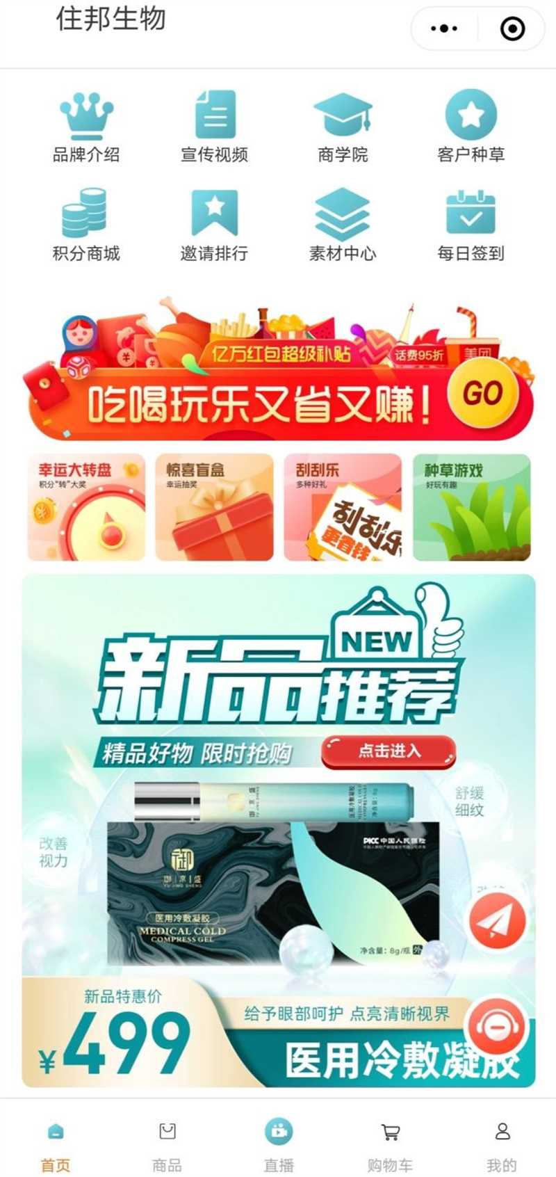 通過代理分享的二維碼進(jìn)入微信小程序“住邦生物科技”,商城中只有“御京盛·醫(yī)用冷敷凝膠”這一款產(chǎn)品,產(chǎn)品零售價(jià)為499元/盒,目前,小程序是該產(chǎn)品的唯一購買渠道。