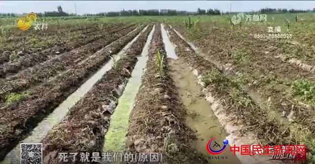 楊先生說,原本有一條排水溝為農(nóng)田排水,但附近有山東高速的高架橋項(xiàng)目在施工,過程中將排水溝全部堵死了,導(dǎo)致水排不出去又倒灌回田里。
