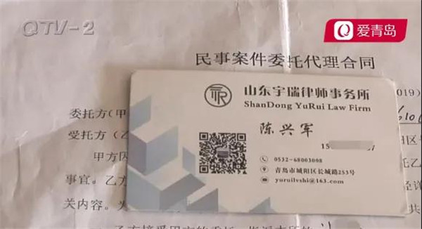 王先生給劉律師打去電話確認此事,但話還沒說完,劉律師就掛斷了電話,隨后記者陪同王先生來到了山東宇瑞律師事務(wù)所,由于正值節(jié)假日,這里沒人上班。記者通過名片上的信息給陳興軍打了電話。