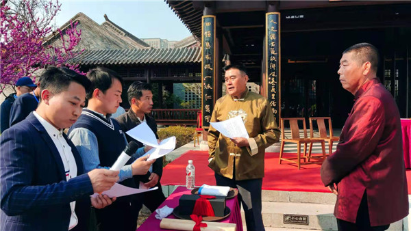 中國(guó)民生新聞網(wǎng)4月9日訊(記者 史小雷 攝影 王順成 楊雪梅)“巍巍昆侖,滾滾長(zhǎng)江,中華文明,源遠(yuǎn)流長(zhǎng)。五千年文化生生不息,萬(wàn)千種技藝薪火相傳……”。隨著主持人慷慨激昂的開(kāi)場(chǎng)誦詞,國(guó)家級(jí)非物質(zhì)文化遺產(chǎn)項(xiàng)目——膠州秧歌非遺代表性傳承人吳英民先生收徒儀式隆重開(kāi)場(chǎng)。這是清明節(jié)期間青島市民俗學(xué)會(huì)在即墨古城學(xué)宮門(mén)前主辦的一場(chǎng)國(guó)家級(jí)非遺項(xiàng)目收徒儀式,