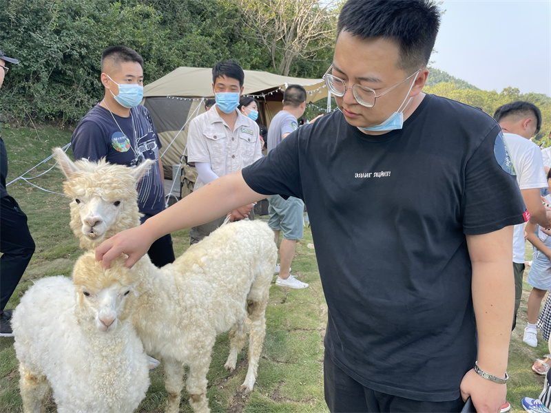 記者現(xiàn)場看到趣·青野 自然營地設立在青島森林野生動物世界亞洲區(qū),與萌寵動物零距離,清晨,小鹿從身邊經(jīng)過,下午,與羊駝共進茶點,與溪邊黑天鵝嬉戲……夜晚,仰望星空,聆聽自然,與動物共度美好時光。