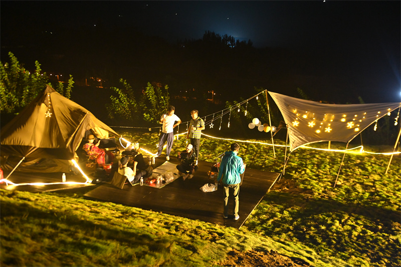 在趣·青野自然營地,游客們可以擇珠山而息,與蟲鳥為伴。當游客置身于森林時,既可以擁抱親近自然的“野”,也能享受愜意現(xiàn)代生活的“奢”??辞鍥鲈律?,聽無盡蟬鳴。在星空中睡去,在晨霧中醒來,遠離城市的喧囂吵鬧。