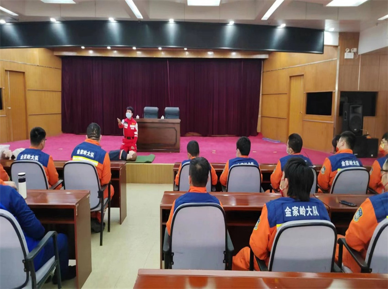 二是邀請藍(lán)天救援隊(duì),首先對防火無線對講指揮操作系統(tǒng)和使用規(guī)程進(jìn)行系統(tǒng)講解,隨后通過與隊(duì)員互動(dòng)的形式重點(diǎn)講授了創(chuàng)傷救護(hù)、心肺復(fù)蘇及“AED”使用、意外傷害等自救知識,全面增強(qiáng)我區(qū)森林消防隊(duì)員的自救互救、應(yīng)急救援能力。